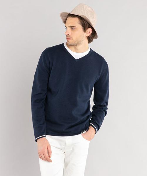 コットン素材の着心地抜群のニットプルオーバー。 Vネックラインのデザインはベーシックでどんなスタイルにも合わせやすい1着です。 左裾部分には、アニエスベーのロゴタグが付きます。 袖をロールアップして内側のライン使いを見せる着こなしがおすすめ。 ※商品にアテンションカードや品質表示タグが付属している場合は、必ずご確認の上、お取扱いください。 (##) 1:肩幅43、バスト100、袖丈63、ゆき丈-、着丈-、身丈66 2:肩幅47、バスト106、袖丈65、ゆき丈-、着丈-、身丈69