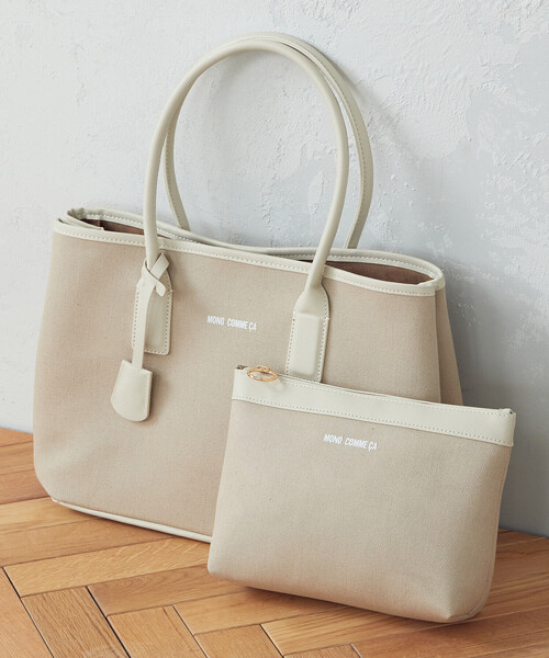 《デザイン》A4サイズのきれいめキャンバストートバッグ。裏地のない1枚仕立てで重くなりすぎず、13インチ相当PCやデバイスが収納できる専用ポケット付きで、ビジネスシーンにも対応できます。単品でも使える、取り外し可能の大きめポーチ付きです。《素材》本体はキャンバス素材。組み合わせにはサフィアーノ調のフェイクレザーを使用。《仕様》内装: オープンポケット×1、デバイスポケット×1、大ポーチ×1、ナスカン×1《取り扱い》濃色製品は水濡れや摩擦により、色移りする場合がありますのでご注意下さい。直射日光や蛍光灯に長時間あたると変色することがありますので保管には十分にご注意下さい。水洗いにより縮みや色落ちが生じることがありますので洗濯はお避け下さい。汚れた場合は柔らかい布に中性洗剤を含ませて、軽く拭く程度にして下さい。合成皮革部分は、汗、水、高温多湿に弱く、汗との摩擦によりまれに表面が劣化、色落ちする事が有ります。又、洗剤、シンナーなどを使用しますと、変色、剥離の原因となります。ご注意下さい。※画像の商品はサンプルとなりますので実際の商品と仕様、加工、サイズが若干異なる場合がございます。※こちらの商品はFIVE FOXes独自の採寸方法となっています。本サイトのサイズガイドと採寸方法が異なる場合がありますのでご了承ください。