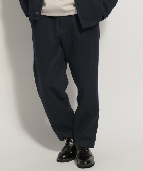 セットアップ対応 上質なパンツをイージーに着こなす ポリエステル素材のヘリンボーン生地を用いて上質に仕上げたパンツ。 ドローコード付きのイージー仕様&ベルトループ付きでスタイルに合わせて印象を変化可能。 同素材のブルゾンと合わせてセットアップスタイルもお楽しみいただけます。