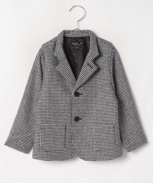 モノトーンカラーのシックな千鳥格子柄のテーラードジャケット。 フロントには、パッチポケットが両サイドに付いたデザイン。 入学・卒業などのセレモニースタイルきちんと感もあり、フォーマルにも活躍する一着。 ※商品にアテンションカードや品質表示タグが付属している場合は、必ずご確認の上、お取扱いください。 (##) 120~130cm(8歳):肩幅32、バスト74、袖丈43、ゆき丈-、着丈49 130~140cm(10歳):肩幅34.5、バスト76、袖丈47.5、ゆき丈-、着丈52.5 100~110cm(4歳):肩幅27.5、バスト66、袖丈34、ゆき丈-、着丈40.5 140~150cm(12歳):肩幅36、バスト82、袖丈52、ゆき丈-、着丈58 110~120cm(6歳):肩幅29.5、バスト70、袖丈39、ゆき丈-、着丈44.5