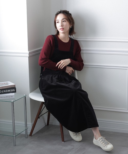 ストレッチコーデュロイジャンパースカート ★歩くたびに表情を変える ------------------------------------------------------------ 腰周りを包み込むふんわりシルエットは体型をカバーも。 ★流行に左右されないデザイン ------------------------------------------------------------ 秋冬シーズン愛用できる大人のカジュアルワンピース。 ★素材感 ------------------------------------------------------------ あたたかみのあるコーデュロイ素材。 伸縮性のある素材で着心地がよく、秋冬にもおすすめです。 ◆素材:綿98%、ポリウレタン2% ◆伸縮性:あり ◆裏地:なし ★サイズ展開 M(9号) L(11号)XL(13号)3L(15号)4L(17号)