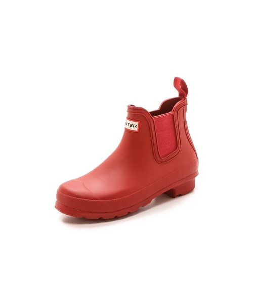 Rubber Hunter rain boots styled in the classic Chelsea silhouette. Inset elastic gores relax the fitted shaft. Soft nylon lining and a cushioned footbed offer a comfortable fit. Lug sole. Fabric: Rubber. Imported, China. Measurements Heel: 0.75in / 20mm Shaft: 5.5in / 14cm