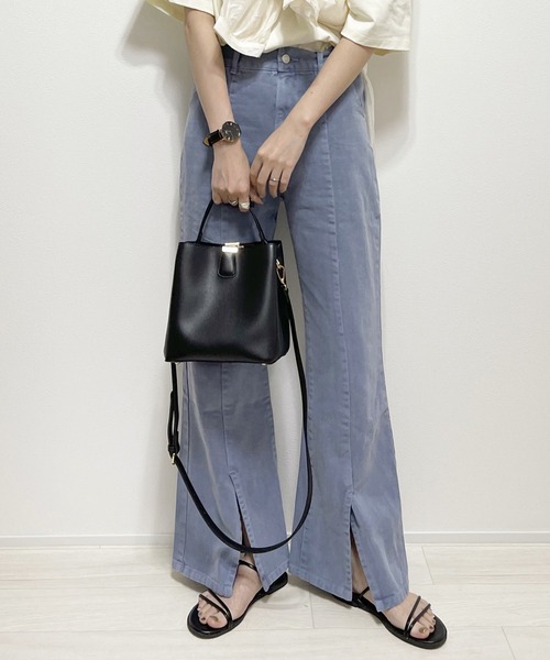 フレアパンツ&フロントのスリットが足長効果と抜け感を演出♡model:aiko着用(165cm)ピグメント加工が施されているので、履きこなすごとに風合いを楽しめます♪【商品のお気に入り登録】完売カラーの再入荷通知やラスト1点の通知プライスダウンの通知も受け取ることができます。ぜひご登録ください!【ブランドのお気に入り登録】新商品や再入荷などいち早くお知らせします!ぜひご登録ください☆彡※ご注意※・屋外の日光や照明の当たり具合で、実際の商品の色味とカラー別画像の色味に若干の違いが発生する場合がございます。・詳細画像と併せてご確認の上、ご注文いただきますようお願い致します。※ご注文いただいた予約商品のお届け時期の確認は、注文履歴ページより行えます。※他のキャンペーンにより、期間中に価格が変動する場合があります。※セールは予告なく終了させていただく場合もあります。