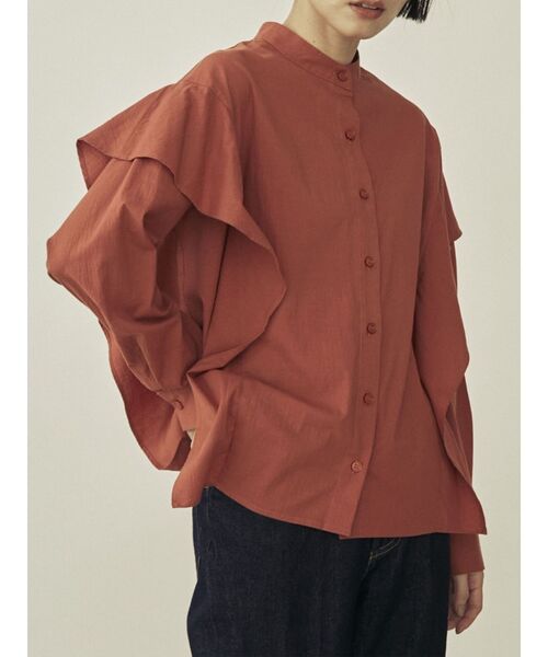 サイドフリルがついたデザインシャツ【Point】 コットン素材を使用したデザインブラウス。 サイドにフリルのデザインがあり、 一枚でインパクトのあるスタイリングが作れます。 ベストなどとレイヤードスタイリングもおすすめです。 【Coordinate】 デニムなどのカジュアルスタイリングがおすすめです。 【詳細】 伸縮性:無し 裏地:無し 透け感:無し 生地の厚さ:普通
