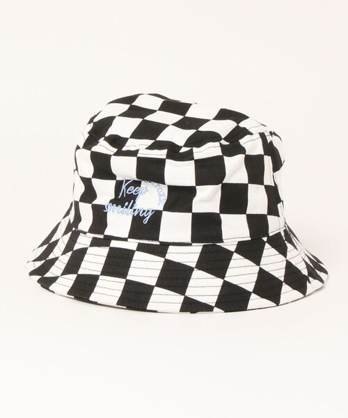 ワンポイントの刺しゅうが入ったバケットハットです。 少し角度のついたツバでトレンド感を演出します。頭周りは内側の面ファスナーで調節可能。無地とカウ柄の2パターン展開なので、スタイルに合わせてセレクトできるのもポイントです。