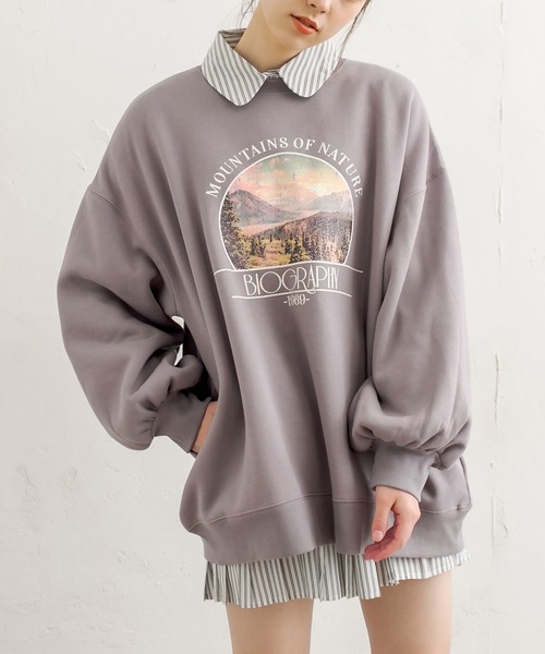 大人気の裏起毛プルオーバー! 1枚で主役になるプリントデザインが登場 ■デザイン ・これからの時期に欠かせな裏起毛プルオーバー。 ・古着っぽいビンテージ感のあるプリントが可愛いデザイン。 ・お洋服に合わせすいくすみカラーで展開。 ・肩幅と身幅に余裕を持たせたビッグシルエットで、リラックスして着られるサイジングです。 ■スタイリング ・ハイネックインナーやレースインナーとの組み合わせもおすすめ。 ・トレンドのプリーツミニスカートでカレッジ風のスタイリングに。 ・フレアスカートやマーメイドスカートでカジュアルガーリーコーデも◎ ・カジュアルにカラーパンツ、コーデュロイパンツでも。 ----------------------------- 裏地:なし 光沢感:なし 透け感:なし 伸縮性:リブ部分あり 生地の厚さ:厚手 ----------------------------- model:166cm ※着用、お取り扱いの際は、商品についている品質表示とアテンションタグを必ずご確認下さい。 ※裏起毛の商品は、生地の特性上毛が抜けやすいです。数回洗濯していただきますと毛が抜けにくくなります。 ※ご覧のモニター環境や撮影環境により実際の商品と多少色味が異なって見える場合がございます。 ご理解の程よろしくお願いいたします。■お気に入り登録のおすすめ【気になるアイテムを登録】ハートをクリックしてお気に入りに登録すると完売カラーの再入荷やラスト1点の通知、セールの通知を受けとることができます。【ブランドを登録】新商品や再入荷、セール通知など、いち早くブランドの情報を受けとることができます。