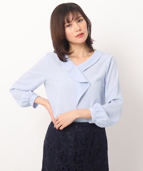 SOUP/INNOWAVE(イノウェーブ)ブラウス【デザイン】華やかさのあるラッフルデザインがポイントのブラウス。落ち感もありジャケットなど上に重ね着してもごわつかない素材感です。首元が程よく開いてデコルテラインを美しく見せてくれる、女性らしいデザインです。甘すぎず大人っぽく着られるパフスリーブが旬な雰囲気です。【生地感】とろみとほんのり透け感のあるジョーゼット素材です。※こちらの商品はやや透け感があるため、インナーの着用をおすすめします。■サイズ表示について※バイイング商品のため下げ札サイズ表記とワールドサイズ表記が異なります。製品寸法をご確認くださいませ。■手洗い可※バイイング商品のため、洗濯表示・注意事項等は、本製品で御確認下さい。こちらの商品は主に春に着用いただける商品です。モデル情報:身長167cm B78 W62 H88 着用サイズ:09(M)店舗へのお問い合わせ商品番号:732-84002●製品寸法:07(S):着丈56cm B95cm 袖丈52cm 肩幅37cm09(M):着丈57cm B98cm 袖丈53cm 肩幅38cm11(L):着丈58cm B101cm 袖丈54cm 肩幅39cm13(LL):着丈59cm B105cm 袖丈55cm 肩幅40cm15(3L):着丈60cm B109cm 袖丈55cm 肩幅41cm備考: