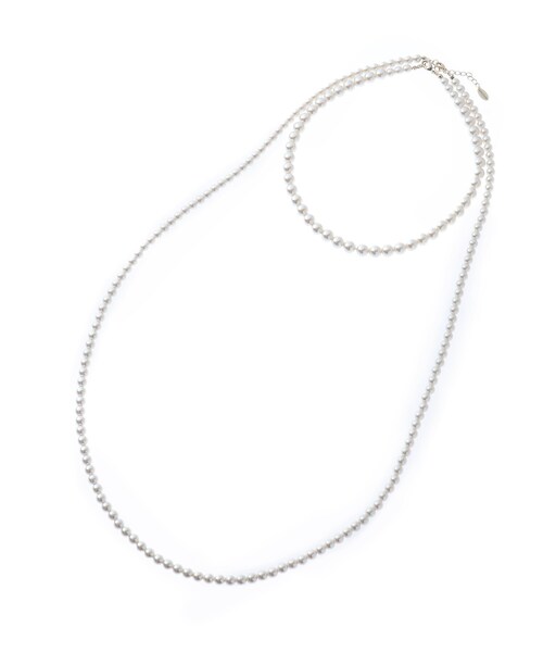 【デザイン】 首元を華やかにするフェイクパールネックレス。 小さいフェイクパールでオケージョンシーンはもちろん、デイリーに着るカットソーとも好相性です。 ロングとショートの2本セットで、単品又は2本使いでと使い勝手も良く、 コーディネートに合わせたスタイリングが楽しめます。 【生地感】 フェイクパールを使用し表面が滑らかで照りが良いです。 【着こなしのポイント】 オケージョンシーンの華やかなシーンから単品使いでカジュアルまでお使い頂けます。 店舗へのお問い合わせ商品番号:153-04110 ●製品寸法: 00:全長92cm モチーフ直径0.7cm 備考:
