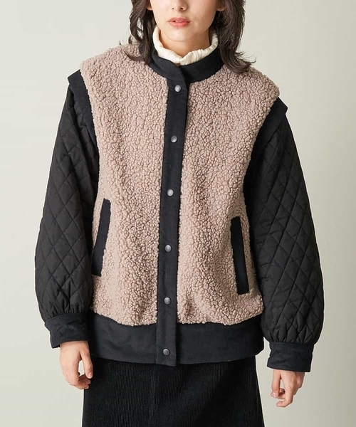 【デザインポイント】 袖部分がキルティングデザインのボアブルゾン。 肩ふらしや袖口がコーデュロイになっているのもポイントです。 袖のファスナーを外して、ボアベストとしても着用できます。 【着用ポイント】 身頃と袖がゆったりとしたサイズ感なので、中に厚手のトップスを着て過ごせます。 袖部分を外してボアベストとしても着れるので、冬本番前後も様々な合わせで楽しめます。 【スタイリング】 モカとブラックのカラー展開なので、コーディネートに取り入れやすくパンツにもスカートにも合うので、 この冬活躍間違いなしです! デニムパンツなどのカジュアルな合わせがおすすめです。