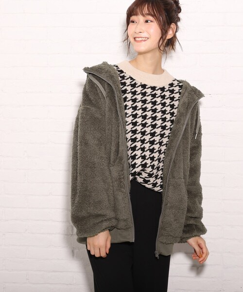■デザインふんわりもこもことしたボア素材のジップアップパーカー。ゆるっとオーバーであざとくかわいらしい雰囲気を演出する一枚です。フード&ハイネックデザインは首元まで暖かにカバーしてくれます。片袖にさり気なく同色刺繍ロゴをあしらっています。※ポケット数:横×2■生地感とても軽く柔らかで着心地の良い素材です。※裏地なし■STAFF着用コメント触った瞬間、柔らかで気持ちの良いタッチです!■スタイリングビッグシルエットで身幅にゆとりがあるデザインなので、ボリュームのあるニットでもストレスフリーに着て頂けます♪程よい生地感なので、上にノーカラーのジャケットや、キルトアウターなどを羽織っても合わせられるのでおすすめです〇春先は羽織としても活躍すること間違いなし!!カジュアル好きさんはワイドパンツや定番デニムに合わせてカジュアルダウンに!キレイめ好きさんはロングスカートやセンタープレスのパンツに合わせるとふんわり女性らしい印象に見せてくれます!#CutieBlonde#Cutie#cutieblonde#cutie#キューティブロンド#キューティ#20代#30代モデル情報:身長165cm B80 W57 H80 着用サイズ:02(M)店舗へのお問い合わせ商品番号:256-34300●製品寸法:01(S):着丈67cm B108cm 袖丈48cm 肩幅58cm02(M):着丈69cm B114cm 袖丈49cm 肩幅61cm03(L):着丈71cm B120cm 袖丈50cm 肩幅64cm備考: