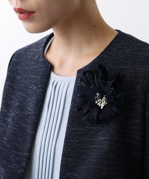 ■付けるだけで華やかに!セレモニーでポイントになるコサージュ 【デザインポイント】 肌なじみのいいニュアンスカラーでラインナップしたコサージュ。 異素材をMixすることで色に奥行きがでます。 その他のセレモニーアイテムとの色合わせもばっちりなのでトーンをそろえればシックで上品なフォーマルスタイルで他と差別化できるコーデが出来上がります。 【スタイリングポイント】 セレモニースーツに合わせるだけで顔回りを華やかにします。 スーツの色味やトーンと合わせてトーン×トーンでこなすのが上品でおすすめ。 店舗へのお問い合わせ商品番号:127-04500 ●製品寸法: 00:H9cm W10cm 備考: