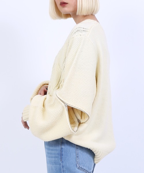 バリエーション豊かな立体感のある編み柄をふんだんに使用したケーブル編みニット。袖はZIPで切り離しが出来る優れものアイテム!!薄すぎず厚すぎない、ウールライクなタッチ感でありながらチクチクせず、ふわっと柔らく軽やかな肌ざわりもポイントです。アクリル素材なので、軽くてお手入れも楽ちん◎程よくゆったりとしたサイズ感が◎★《お気に入り登録》でお得な情報がいっぱい★・「商品のお気に入り登録」で再入荷通知や、ラスト1点の通知、セール通知も受け取ることができます。・「ブランドのお気に入り登録」で新商品や再入荷など、いち早くブランドのお得な情報を受け取ることができます。