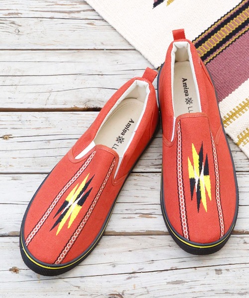 人気のオルテガ柄シリーズにシューズが誕生! コットン素材をベースに、インパクトのあるオルテガ柄刺繍をデザインしたメンズスリッポン。 口が広く、ストレッチの効くゴム付きで着脱もしやすく歩きやすいデザインです。 アクティブシーンの相棒に◎自分らしさをもとめ歩き出そう。 ※こちらの商品は1点1点職人による手作りとなります。その為、形や色合い・模様など若干異なる場合がございます。あらかじめご了承ください。 ※サイズには個人差がございます。あくまで目安にお考えくださいませ。 Amina Collection Co.,LTD.