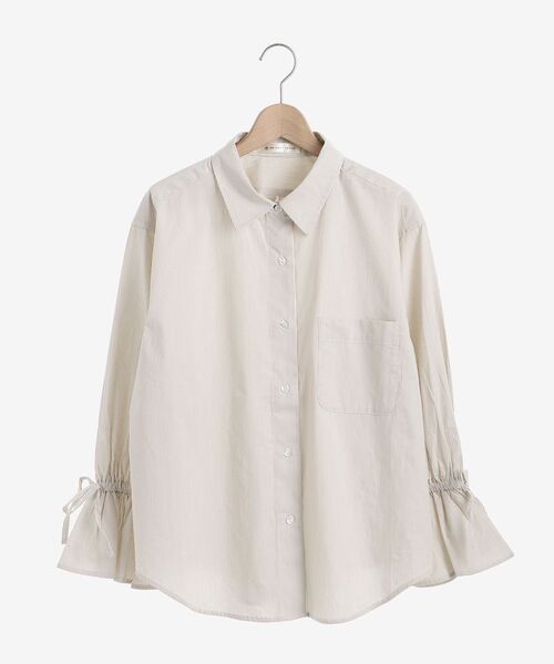 シンプルながらも細かいところにこだわりをつめたシャツ♪ 第一ボタンのボタンホールをあえて配色にしてこなれ感を演出。 ボリュームのあるキャンディスリーブはゴムが入れることで着やすくしています。 リボンは止め付けてあるので、解ける心配がなく安心して着れる☆ 1枚で着ても、重ねて着ても◎の万能アイテムです。