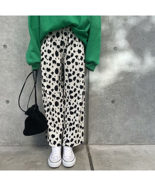 ホルスタイン柄がポイントのおしゃれなプリーツパンツです。 裏起毛で肌触りもよく真冬でも暖かく着て頂けます。 ウエストゴムとストレートシルエットで、楽な着心地ながら美脚効果も叶うのがうれしいポイント◎ 裾はカットオフになっているので、こなれた印象になります。 モノトーンカラーなのでコーディネートのしやすいアイテムです☆ ※モデル身長:161㎝ ◾️クリックポストにて代引きをお選び頂いた方は、400円プラスさせていただき、宅配便代引きにて発送させていただきますのでご了承下さい。 ◾️カラー ホルスタイン ◾️サイズ M:総丈95cm ウエスト(ゴム)33cm(ウエスト64〜70) 股下66cm ※多少の誤差は予めご了承ください。 ◾️素材 ポリエステル97% ポリウレタン3%