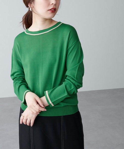 【2022SS natural couture】 配色ラインが目を惹く◎ちょっとモードな配色ラインニット■Design カラーによって印象の異なる配色デザインが魅力な、シンプルながらもコーデの主役になる1着。シーズン問わずお召し頂けるニット地を採用し。コーデに迷った日でもお手持ちのアイテムに合わせて頂くだけで決まります。ほんのりモード感と、女性らしいすっきりとしたネックラインできちんと感も演出してくれます。■Styling フレアラインやIラインシルエットのスカートをはじめ、スラックスやデニムにウエストインして頂くだけで、配色デザインが引き立つコーデに仕上がります。お好みでジャンパースカートやキャミワンピースのインナーとしても◎■Fabric ロングシーズンお召し頂ける、軽めのニット地を採用。色違いで持っていても、シーズンに合わせて着回して頂ける1着です。===============透け感:ややあり裏地:なし伸縮性:あり光沢感:なし生地感 :柔らかな生地感===============【お気に入り登録でお得な情報がいっぱい】・「商品のお気に入り登録」で再入荷通知や、ラスト1点の通知、セール通知をいち早く受け取ることができます。・「ブランドのお気に入り登録」で新商品や再入荷など、お得な情報を受け取ることができます!