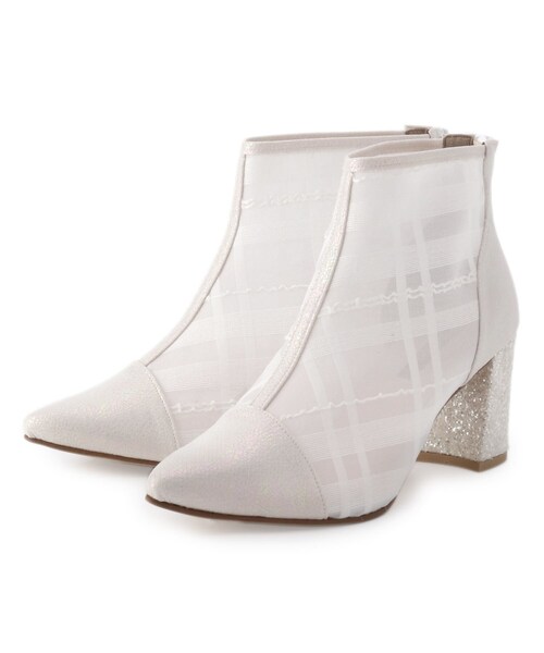 ヌケあるシアー生地、輝くヒール、さりげなくグリッターなアッパーや切り替えライン。そんなこだわりの異素材づかいがブーツスタイルをぐっと新鮮に、軽やかに見せてくれる魅力的な一足です。重くなりがちな季節のコーデもこんな一足があれば、足元軽やかに好バランス&高感度に仕上げてくれそうです。※画像と柄の位置が異なる場合がございます、ご了承下さい。※配送時の状況により、箱が破損している場合がございますので予めご了承下さい。店舗へのお問い合わせ商品番号:P07-69137●製品寸法:S(22.0cm-22.5cm):対応サイズ22.0~22.5cm ヒール高6.8cm 幅7.8cm プラットフォーム0.2cm 筒周り22cm 重量片足約205gM(23.0cm-23.5cm):対応サイズ23.0~23.5cm ヒール高7cm 幅8.2cm プラットフォーム0.2cm 筒周り23cm 重量片足約220gL(24.0cm-24.5cm):対応サイズ24.0~24.5cm ヒール高7.2cm 幅8.4cm プラットフォーム0.2cm 筒周り25cm 重量片足約230gLL(24.5cm-25.0cm):対応サイズ24.5~25.0cm ヒール高7.2cm 幅8.4cm プラットフォーム0.2cm 筒周り25cm 重量片足約230g備考: