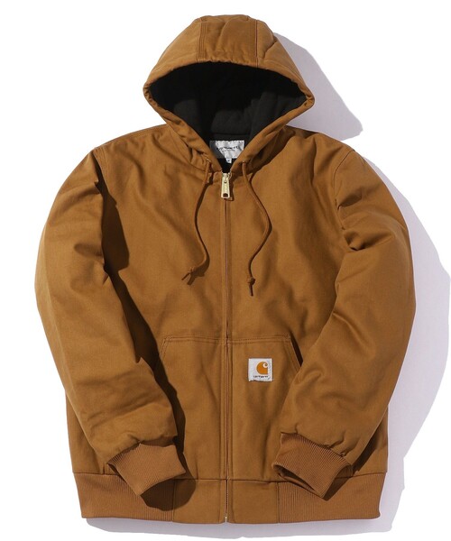 2021 Fall&Winter item定番のダックジャケット!防寒性に優れたタフな素材感が魅力●長年愛され続ける、定番シルエットのフード付きブルゾン。ダック生地のタフな素材感で愛着を持って長年使用できるアイテムです◎●表地には12オンスの厚手コットンダック生地を使用してます。袖口はリブ仕様になっており、風を通さず袖口からの冷気の侵入を防いでくれます。●ゆったり目のシルエットで、ストリートな雰囲気抜群の1着です。トレンドのショート丈◎コーディネート・ストリートスタイルにマッチする大き目なサイズ感で、インナーにビックシルエットのスウェットを合わせてもごわつかず、トレンドのスタイルを楽しめます。・ショート丈のデザインなので、ワイドパンツを合わせてストリートテイストやワークテイストの男らしいスタイルから、細めのパンツを合わせてメリハリをつけるスタイリッシュな着こなしまで、幅広くコーディネートを楽しめます。スタッフリコメンドカーハートとの定番アイテム!一度は見たことがある方も多いあアイテムではないでしょうか。古着でも展開の多いアイテムですが、新品をお購入して1から育てる楽しみのあるアイテムです◎今冬の主役アウターとして、是非ご検討ください!