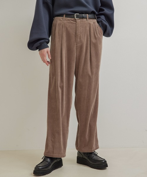 【セットアップ対応】コーデュロイワイドパンツ 【素材】 程よい落ち感と上品な光沢感が特徴の中畝コーデュロイ素材を使用。 コットンにレーヨンを混紡することで柔らかさと落ち感を表現しています。 【デザイン・シルエット】 タックの入ったボリュームあるウエストラインからストレートに落ちるシルエット。 ワイドではあるもののコーデュロイの素材感が上品な印象になっています。 【カラー】 スタイリングに使用しやすい、チャコール、モカに加えトレンド感のあるニュアンスカラーのオフのラインナップです。 【スタイリング】 同素材のブルゾンで合わせるセットアップスタイルもおススメですが、ゆったりしたロングコートに合わせたコーディネートもおススメです。 (セットアップ対応アイテム:ANL81210 コーデュロイCPOブルゾン) ----------------------------- 裏地:なし 光沢感:なし 透け感:なし ポケット:あり 伸縮性:ややあり ----------------------------- 【モデル着用サイズ】 身長177cm 着用サイズL