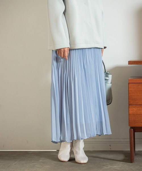存在感のあるランダムプリーツデザイン 《素材》 サラサラとしたポリエステル素材。程よくふんわり広がる、軽い穿き心地です。 《デザイン》 腰回りと裾でプリーツの幅異なる特徴的なデザイン。細かいプリーツで広がりにくく、腰回りをすっきり見せてくれます。裾にかけて太めのプリーツが入ることで、立体感があり動きのあるデザインに仕上げました。 《スタイリング》 フェミニンなデザインなので、あえてカジュアルなアイテムと合わせるとこなれた印象に。女性らしいデザインを活かして、すっきりとしたニットやカットソーと合わせて、レディな雰囲気で着るのもおすすめです。