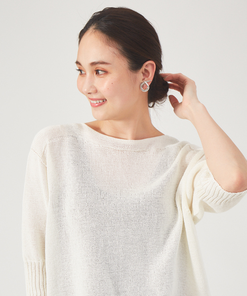 *Detail*毎シーズンロングヒットを遂げる、カリテ定番素材を使用した春のベーシックニットです。 麻のようなドライタッチのコットンで夏まで着られる優秀なニット。 ホールガーメントで着心地も抜群!今年は袖を7部丈にし、ロングシーズン着られる仕様に。 ボートネックの程よいあき感で女性らしさもプラスしお仕事などでもお使い頂きやすいデザインに。 *Coordinate* ON・OFF兼用、春~初夏時期までと、着回ししやすく長くお使いいただける春一押しニット◎ ベーシックながら着映えするニットは一枚でこなれスタイルが完成。 デニムはもちろん、きれいめなパンツ合わせでお仕事シーンにもぴったり。 オフホワイト モデル:H171 B80 W58 H86 着用サイズ:F チャコールグレー モデル:H171 B80 W58 H86 着用サイズ:F