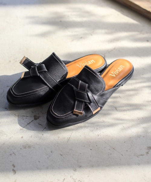 特徴的なノットデザインベルトがアクセントの高見えスリッパスクエアトゥ×アッパーのステッチ使いでトレンド感アップ!カチっとし過ぎない”ラフ”さを残しつつ、見た目が靴っぽいので大人な上品さを醸し出す秀逸なアイテム!ハンサムコーデだけでなくレディライクなスタイリングにもオススメ!◇履きやすさのポイント◇・足が痛くなりにくく疲れにくい低反発クッションインソール・屈曲性のあるやわらかい底で力の吸収力がよく、足が痛くなりにくく疲れにくい。・裏材は見た目がおしゃれ、足当たりもいい生地を使用・フラットで歩きやすい・ミュールデザインで脱ぎ履きラクチン< サイズ詳細>■S (22.0-22.5cm)■長さ:23.8cm/ワイズ:21.3cm/幅:7.9cm/ヒール高さ:1.5cm■M (23.0-23.5cm)■長さ:24.8cm/ワイズ:22.0cm/幅:8.0cm/ヒール高さ:1.5cm■L (24.0-24.5cm)■長さ:25.5cm/ワイズ:22.5cm/幅:8.1cm/ヒール高さ:1.6cm■LL (24.5-25.0cm)■長さ:26.2cm/ワイズ:23.0cm/幅:8.2cm/ヒール高さ:1.6cm※サイズスペックについては、VivianCollection独自の方法により採寸しております。プチプラシューズ専門店「VIVIAN COLLECTION」▼お気に入り登録をおすすめします▼♡をクリックしてお得なセール情報や、再入荷情報、ラスト1点の通知など、お買い得情報をいち早く受ける事ができます。ブランド【VIVIAN COLLECTION】のお気に入り登録も一緒に追加するとお得なニュースを配信しております♪