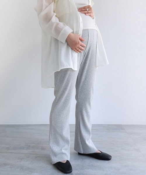 ふっくらソフトなリブ素材が心地よい♪大人気!セルフカット・リブ・シリーズに、ウエストゴム&たっぷりストレッチで楽ちんな《マタニティ・フレアパンツ》が新登場!こだわったのは、なるべく「マタニティに見えない」シルエット。当店人気のフレアパンツをベースに、お腹周りにパンツ部分と同素材を採用し、マタニティーらしさを抑えたデザインに仕上げました。細すぎず太すぎず、絶妙なバランスはそのまま、着心地を重視し、少しゆとりのあるサイジングに。着用すると、ほんのり広がるフレアがスッキリと美脚にみせてくれます♪切りっぱなしでも糸がほつれにくい素材を使用し、裾をお好みの長さにカットして使える便利な1本。サイドポケットあり。ポケット裏地は薄手の素材を使用し、モタつかないよう工夫しました。おうち時間のリラックスタイムや妊娠中はもちろん、産後や手術後などの楽ちんアイテムとして、お腹に負担をかけずにお使い頂けるアイテムです。ウエスト部分を折り返して着用すれば、産後も着用可能なのもおすすめポイントです♪※裏地なし※撮影時のライティング、ご覧になっているモニター・PC環境により実際の商品と色味が異なって見える場合がございます。ご了承の上お買い求め下さい。素材:ポリエステル63% 綿34% ポリウレタン3%≪備考≫伸縮性:あり透け感:なし生地の厚さ:やや厚手肌ざわり:さらっとしているその他:凹凸のあるリブ素材ふっくらとした質感生産地:中国洗濯機:可 ドライクリーニング:可andme アンドミー春 夏 春夏 夏服 春服秋 冬 秋冬 秋服 冬服セットアップ