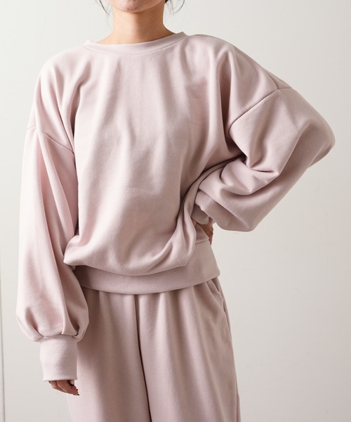 普通のスウェットより着回しが効く1着! 柔らかいスウェット素材で、ゆったりとしたデザイン 袖は、たっぽりとボリュームがありかわいらしいデザインです。 ちょっとしたお出かけにも着て頂けます。 2WAYで前後ろどちらでも着て頂けます。 同じ生地のスウェットパンツとセットアップで着るのもおすすめです。 身幅もゆったりとしているので、妊婦さんにもおすすめです。 ********************** 透け感:なし 裏地:なし 伸縮性:ややあり 光沢感:なし 生地の厚さ:普通 サイズ感:ゆったり シーズン:春、秋、冬 ********************** ROOMWEAR 洗濯:洗濯機使用可(ネット使用) ※商品画像は、光の加減により若干カラーの見え方が異なります。ご了承ください。