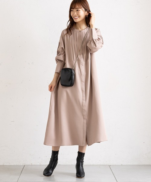 タック使いが魅力的な こだわりシャツワンピース 【ポイント】 ●タックをふんだんに使ったこだわりデザイン ●フロント・ショルダーに施した表情豊かな タックがクラシカルな印象に ●とろみのある素材感が優美で大人な雰囲気を演出 ●ふんわりボリューム袖が女性らしいシルエットに ●フライフロント仕様でボタンが隠れるスマートなデザイン ●前を開けて羽織として着用するのもオススメ 【オススメコーディネート】 ・1枚でロングブーツやショートブーツをサラッと合わせた 女性らしさ光る大人なワンピスタイル ・パンツをレイヤードしたり、 前を開けてカーデ風に羽織る こなれたアレンジスタイルもオススメ -------------------------------------------------------------- 生地の厚さ:やや薄手 伸縮性:ややあり 透け感:ややあり 裏地:なし -------------------------------------------------------------- ※商品のお取り扱いに関しましては、商品に付属の アテンションカード、洗濯ネームをご覧ください。 ※撮影場所やお使いのモニター環境により若干お色味が 異なる場合がございます。 特にロケの撮影では明るく見える傾向にございます。 ※サイト上ではフリーサイズの表記ですが、商品タグには Mサイズと表記されている場合がございます。 その場合、ワンサイズでのご用意となりますのでサイズミス などではございません。詳しいサイズはサイズスペックを ご確認いただきますようお願い致します。 ※サイト上でのカラー名とお届けした商品に記載されている カラー名が異なる場合がございますので予めご了承ください。 --------------------《Information》-------------------- 【商品のお気に入り登録】 →カートに入れる右側の【♡マーク】をクリック! 完売カラーの再入荷通知やラスト1点の通知、 セールの通知を受け取ることができます。 【ブランドのお気に入り登録】 →ブランドタグのページから【♡お気に入りショップに追加】 をクリック! 新商品や再入荷など、ブランドのお得な情報を いち早く受け取ることができます。 是非ご登録頂き、お買い物をお楽しみください◎ <返品・キャンセルについて> ・着用・洗濯後の返品は致しかねます。 ・商品到着後、着用前に商品を確認して頂きますようお願い致します。