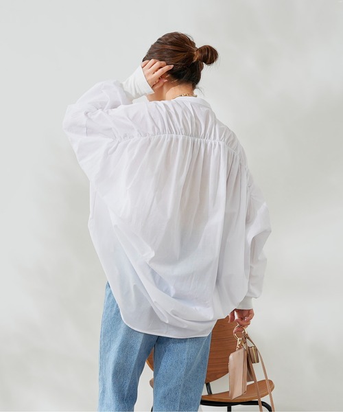 ■2022 SPRING & SUMMER ITEM■前後のコントラストが印象的なブラウスバックにたっぷりとギャザーを施したデザインがポイントのブラウス。肌当たりの良い、春夏にぴったりの素材感で仕上げました。少し広めに取った身幅で、ゆるっとラフに着て頂けるシルエットに。また、やや前後差のあるヘムラインに、バックはヒップに掛かる丈感で気になる部分をさり気なくカバーしてくれます。お袖は、きゅっと沿うような柔らかいリブの素材に切り替え、おしゃれ度高まるワンポインㇳに。フロントのボタンを閉めてきっちりと、ボタンを開けてワンピースやインナーの上からざっくりと羽織って...など、ボタンの開け閉め次第で、様々な着こなしを楽しんで頂けますよ♪--------------------------------透け感: ややあり裏地: なし伸縮性: なし光沢感: なし--------------------------------【 ♡ をクリックでお得な情報をお知らせいたします 】〈 商品のお気に入り登録 〉 お気に入りアイテムのお値下げ・再入荷・在庫ラスト1点など通知を受けることができます。〈 ブランドのお気に入り登録 〉DOUDOUの新商品や再入荷、セール、クーポン配布などお得な情報を受けることができます。--------------------------------------※ 生産の都合上、お届け時期が前後する場合がございます。※ 掲載画像の商品の色味は、 撮影場所や光の当たり具合などにより色味が異なって見える場合がございます。 また、お客様のお使いのPC・スマートフォン等のモニター環境などにより色味が異なって見える場合がございます。予めご了承の上ご注文ください。 ※ 着用、お取り扱いの際は、商品についている品質表示とアテンションタグを必ずご確認下さい。