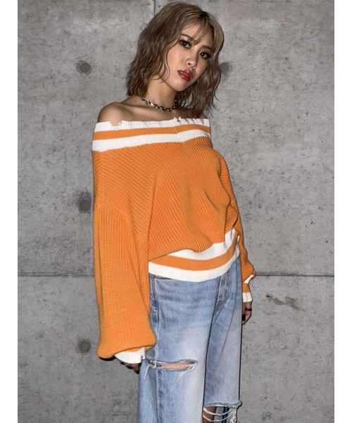 【商品説明】 ■Detail ライン使いがポイントの両Vニットトップスが、SPRING verで登場。 今季の気分にぴったりなビタミンカラーのORANGEと、定番で使いやすいWHITE・BEIGEの3色展開です。 オフショルにすることを前提としたネックデザインで、デコルテや肩周りを女性らしく綺麗に見せてくれます。 露出を控えたい方は、肩を落とさずに両Vネックのニットとしても着用可能です。 ルーズな袖が可愛いらしい印象ですが、ネックと袖口にダメージが施されているので甘くなり過ぎません。 チクチク感がなくさらりとした綿混糸で、季節の変わり目に着やすいニットです。 ■Styling 華奢なデコルテ周りは見せつつ、袖や裾にボリュームを持たせた細見えするニットなので どんなシルエットのボトムともコーデが組みやすいです。 甘く見えてしまいがちな白ニットも太めのラインが今っぽく、レザーitemと合わせて頂くと更にEGOISTらしく仕上がります。シンプル/カジュアル/大人コーデ/オススメ人気/着回し抜群/ワイドシルエット 【生地感】透け感:なし裏地:なし伸縮性:あり生地の厚さ:普通<おすすめ便利機能>▼商品のお気に入り登録▼商品ページ内のハートマークをクリック!完売カラーの再入荷や、ラスト1点の通知、お得なお値下げの通知を受ける事ができます。※ご覧のモニター環境により、画像の色味と多少異なる場合がございます。▼ 商品のお気に入り登録がおすすめです ▼商品ページ内のハートマークをクリック。完売時の再入荷や、最後の1点の通知、コーディネート画像がアップされたとき、お得なお値下げの際の通知を受ける事ができます。【お知らせ】ページでも通知が確認できます。