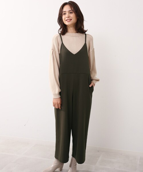 ■デザイン上品なワイドシルエットに、華奢なストラップが女性らしく着ていただけるサロペットです。一枚取り入れるだけでコーディネートが決まるサロペットは、ちょっとしたお出かけにもぴったりです!ゆったりワイドなシルエットなので、腰回りが気になる大人女性にも着こなしやすくフェミニンなデザインです。インナーを変えればロングシーズン楽しめるアイテムなので、一着持っていると幅広く活躍します。※ポケット数:横×2、後ろ(ダミー)×2■生地感滑らかな肌触りで、伸縮性があるので着心地ばっちりの素材感です。※裏地なし■STAFF着用コメントゆったりシルエットなので体のラインを拾いにくく、体型カバーに◎また、落ち感がキレイなのですっきりと見えますよ!インナーにニットを合わせても、もたつかずに着ていただけます^ ^■スタイリング柄物のインナーを合わせるとかわいいですよ ボーダーはもちろん、リブ編みや求心柄のニット合わせもオススメです。こちらの商品は主に秋に着用いただける商品です。モデル情報:身長167cm B79 W59 H87 着用サイズ:02(M)店舗へのお問い合わせ商品番号:741-53013●製品寸法:02(M):総丈121~134cm 着丈99cm 前立て28cm W90cm H104cm 股下61cm 前股上34cm 渡り幅38cm 裾幅29cm03(L):総丈122~135cm 着丈101cm 前立て30cm W92cm H106cm 股下62cm 前股上35cm 渡り幅39cm 裾幅30cm備考:
