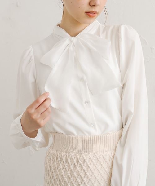人気のボウタイブラウスが、より春らしいデザインで バージョンアップ ■デザイン ・さわやかな白のストライプと、ベーシックな無地、花柄にレースを重ねたオリジナル生地の3色展開。 ・ボウタイは取り外しが可能で、お好みのスタイルに合わせていただけます♪ ・大きめのリボンが一枚でもレイヤードしても可愛いデザイン。顔周りも華やかな印象に。 ・お袖はレイヤードしやすい程良いゆとり感。重ね着もスッキリ着ていただけます。 ■スタイリング ・ガーリーにニットをレイヤードしても良し!スウェット合わせでカジュアルUPしても 旬見えスタイルに。 ・この春注目のデニムアイテムとの相性も抜群!足元はローファー合わせで決まり◎ ----------------------------- 裏地:なし 光沢感:なし 透け感:あり 伸縮性:なし ----------------------------- model:166cm ※着用、お取り扱いの際は、商品についている品質表示とアテンションタグを必ずご確認下さい。 ※ご覧のモニター環境や撮影環境により実際の商品と多少色味が異なって見える場合がございます。 ご理解の程よろしくお願いいたします。 ■お気に入り登録のおすすめ 【気になるアイテムを登録】 ハートをクリックしてお気に入りに登録すると 完売カラーの再入荷やラスト1点の通知、セールの通知を受けとることができます。 【ブランドを登録】 新商品や再入荷、セール通知など、いち早くブランドの情報を受けとることができます。