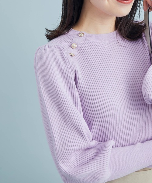 シンプルだけど一癖あるのがポイント!【デザイン・シルエット】きらっとさりげなくポイントになるメタル釦が飾り付けされた袖コンシャスのリブプルオーバーです。袖のボリューム感のシルエットが女性らしく、袖口リブが長めにしているので手首のところも華奢に見え、一枚で決まります。キレイめにもカジュアルにも活躍する1枚です。※こちらの商品はBVM31310と同型・素材違いになります。【素材】柔らかく伸縮性のあるリブニット素材。【カラー】ベーシックからポイントになるカラーまで、豊富なカラー展開。【おすすめのスタイリング】スカートと合わせてフェミニンに、パンツと合わせて格好良くコーディネートできます。カラーによっても雰囲気が変わるので色違いで欲しくなるトップスです◎-----------------------------裏地:なし光沢感:なし透け感:なし伸縮性:あり生地の厚さ:中肉ボタン:あり(飾りボタン)季節:秋~春-----------------------------【モデル着用サイズ】全色モデル身長:160cm、着用サイズ:F※画像の商品はサンプルです。 実際の商品と仕様、加工、サイズが若干異なる場合がございます。