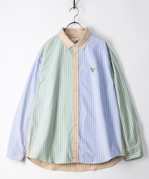 ■エンブロイダリーストライプシャツ/ビッグシルエット ■detail&fabric オックス素材のカラーストライプシャツ。ワンポイントで恐竜モチーフが刺繍されたデザイン。キレイ目なストライプシャツに恐竜モチーフがどこかレトロさを感じされる1着。シルエットはゆったり目でオーバーサイズでの着こなしがおススメ!!女性でも着用できるユニセックスアイテム。カラーはイエロー、サックスブルー、グリーンにクレイジーパターンを加えた4色展開。 ■coordinate これからの季節におススメのストライプシャツ。トレンドアイテムだからこそ合わせるコーディネートも広がりスキニーパンツ、テーパードパンツ、シェフパンツ、カーゴパンツ、スケーターパンツなど選ぶアイテムでトレンド感が一気に高まる。シャツ単体での着用はもちろん、アウターにカーディガンやデニムジャケット、ダウンジャケット、ナイロンジャケットなどを合わせる事でインナー使いとしてコーディネイトを楽しめる。これからの季節にはスニーカーはもちろん、レザーシューズ、ブーツで合わせると一気に落ち着いたイメージをプラスできサコッシュ、ボディバッグ、バケットハットやローキャップの小物類の組み合わせではレジャーや行楽シーンでも活躍する。オーバーサイズのルーズなサイジングでゆるめなコーディネートはもちろんインナーとしてのレイヤードが可能。男女問わずに着用できるのでカップルコーデや友人同士のペアコーデにも最適。 <お買い物をお楽しみ頂くために> ■購入ボタン横のハートマークをクリック! 完売カラーの再入荷通知、ラスト1点の通知、セールの通知も 受け取ることができます(商品のお気に入り登録) ■ショップのトップページにあるハートマーク【お気に入りショップに追加】をクリック! 新商品の入荷や再入荷等、いち早くブランドのお得な情報を受け取ることができます(ブランドのお気に入り登録) 【Slash Date/スラッシュデイト】 カジュアルとクリーンが融合するクローゼットをテーマに、リラックスとスタイリッシュをMIXさせたボーダレスなファッションをプチプライスで提案します。