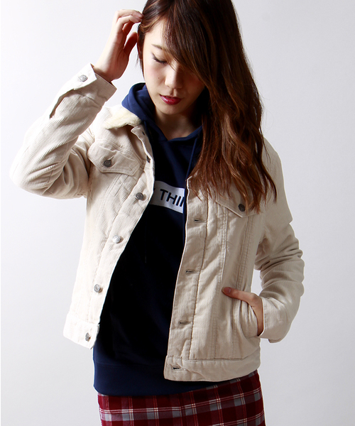 襟部分にボアをあしらったGジャン。秋冬らしい素材を使用した遊び心ある仕上がりです。また、内側にもボアを使用しているので、防寒性や保温性にも優れたひと品。ショーツやスカートは勿論、ワンピースの上からもサラリと羽織って頂けます。今季は一枚で着用頂くのは勿論、ヘアバンドやスニーカーと合わせるような、スポーツミックス感ある着こなしもオススメです。 店舗にてお問い合わせの際は、下記の品名・品番をお申し付け下さい。 品名:ボアGジャン 品番:BL14WN-2004-018 model H163 B80 W59 H88 着用サイズ:FREE WEGOの特集ページはコチラ