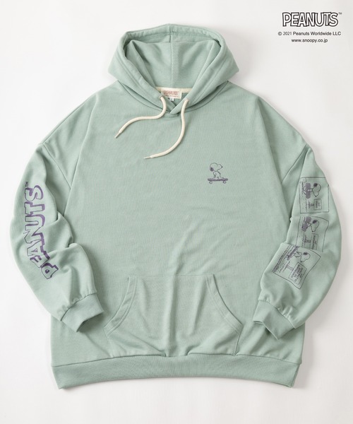 ■【PEANUTS/ピーナッツ】SNOOPYスヌーピーアームプリントフーディ―/プルパーカー/ビッグシルエット ■detail&fabric 人気の「ピーナッツ」シリーズから遊び心のある袖プリントフーディーが登場。素材はポリエステル混の裏毛素材で肌触り、着心地が良い。右袖にはPEANUTSロゴ、左袖にはスヌーピーがボックスイラストでプリントされたデザイン。 オーバーサイズなのでカジュアルウエアとしてはもちろん、ワンマイルウエアやルームウエアとして幅広い着こなしが楽しめます。メンズも着用OKのユニセックスサイズなので友達やカップルでのペアコーデや大切な人へのプレゼントとしてもおススメ。 ■coordinate これからの季節におススメのプリントフーディ―。トレンドアイテムだからこそ合わせるコーディネートも広がりスキニーパンツ、テーパードパンツ、シェフパンツなど選ぶアイテムでトレンド感が一気に高まる。スウェット単体での着用はもちろん、ネルシャツやCPOシャツ、デニムジャケット、ナイロンジャケット、コーチジャケット、マウンテンパーカー、MA-1などを合わせる事でインナー使いとしてコーディネイトを楽しめる。これからの季節にはスニーカーはもちろん、レザーシューズ、ブーツで合わせると一気に落ち着いたイメージをプラスできサコッシュ、ボディバッグ、バケットハットやローキャップの小物類の組み合わせではレジャーや行楽シーンでも活躍する。オーバーサイズのルーズなサイジングでゆるめなコーディネートはもちろんインナーとしてのレイヤードが可能。男女問わずに着用できるのでカップルコーデや友人同士のペアコーデにも最適。 ■brand history 【PEANUTS/ピーナッツ】 アメリカ合衆国の漫画家であるチャールズ・M・シュルツによる漫画及びアニメ作品である。作品内に登場するビーグル犬の「スヌーピー」は世界中の人々に親しまれるキャラクターとなり、誕生から70年以上経った今でも根強い人気となっている。アパレル・雑貨といった多岐にわたって商品を展開しており、その愛くるしさから年齢・性別を問わずに着用出来る。 <お買い物をお楽しみ頂くために> ■購入ボタン横のハートマークをクリック! 完売カラーの再入荷通知、ラスト1点の通知、セールの通知も 受け取ることができます(商品のお気に入り登録) ■ショップのトップページにあるハートマーク【お気に入りショップに追加】をクリック! 新商品の入荷や再入荷等、いち早くブランドのお得な情報を受け取ることができます(ブランドのお気に入り登録) 【Slash Date/スラッシュデイト】 カジュアルとクリーンが融合するクローゼットをテーマに、リラックスとスタイリッシュをMIXさせたボーダレスなファッションをプチプライスで提案します。