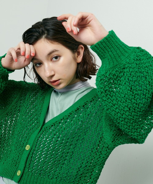 Lui's FEMME(ルイス ファム)オリジナル22SSコレクションより、透かし編みボリュームショートカーディガンの登場です! 【素材】 伸縮性のあるポリエステル混のテープヤーンをメッシュのような立体感のある透かし柄に編み上げたショートカーディガン。 【デザイン】 メッシュのような立体感のある編み地が目を惹くカーディガン。透かし編みで軽やかに仕上げ、すっきりとした印象です。Vネックがデコルテをきれいに魅せ大人らしい雰囲気に。ショートな着丈にボリュームのある袖でバランスの良いこだわりのシルエット。大きめのマーブルボタンもさりげないポイントです。 【コーディネート】 ハイウエストボトムとの相性抜群!フレアスカートやワイドパンツなどさまざまなコーディネートにハマります。ボタンを全て留めてプルオーバーのように着こなすのもおすすめ!夏まで着用できる長い期間で活躍してくれるアイテムです! 【ブランド】 Lui's FEMME(ルイス ファム) 凛とした芯のある女性。 自立した、女性のワードローブをイメージ。洗練されたかっこよさの中に、女性らしさ・かわいさ・セクシーさを持つ。自分自身のスタイル(自分らしさ・個性・生き方・感覚...)を表現できるひとつの手段としての服。肩肘張らない、心地よいリラックス感のあるスタイルを上質な素材、優雅なシルエットで提案。 ********************** 透け感:あり 裏地:なし 伸縮性:あり 光沢感:なし 生地の厚さ:薄手 ********************** 【スタッフ着用コメント】 20代前半/身長:163cm/普段サイズ:S~M/着用サイズ:FREE サイズ感:ゆるすぎないシルエット。ショート丈なのでスタイルアップも◎ 素材感:やわらかいメッシュで伸縮性抜群で、持ち運びもしやすいです。 着心地:ボリュームのある見た目ですがメッシュデザインなので涼しく着られます。ヘルシーな肌見せも叶います! ********************** ■商品のお気に入り登録(ハートマーク) 完売カラーの再入荷、ラスト1点の通知、セールの際の通知を受け取れます。 ■ブランドのお気に入り登録 新商品の入荷など、いち早くブランドのお得な情報を受け取れます。 是非ご利用ください。 ※掲載画像の商品の色味は、屋内の光の照射や角度により実物と色味が異なる場合がございます。 予めご了承ください。