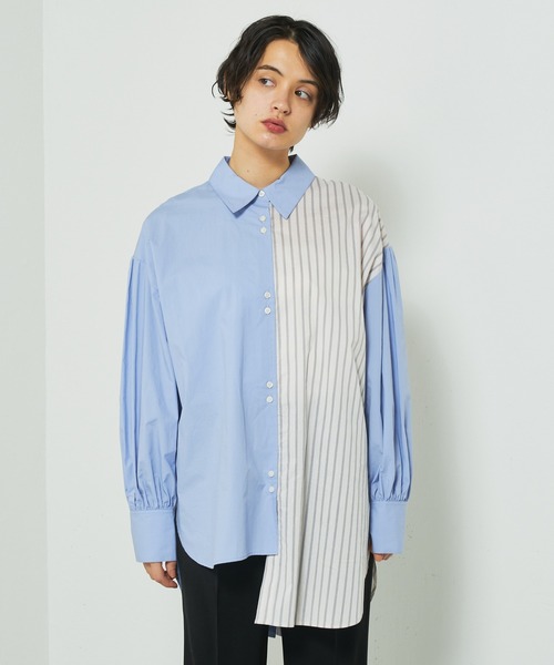 Lui's FEMME(ルイス ファム)オリジナル22SSコレクションより、ストライプドッキングオーバーシャツの登場です! 【素材】 柔らかく軽さのある生地を使用。ストライプ柄で爽やかな印象がありながらドッキングデザインによりモードな雰囲気の漂う一枚。 【デザイン】 秋冬シーズンに大好評だったデザインシャツが生地を変え、雰囲気を新たに再登場!ストライプ柄と無地を左右で切り替えドッキングさせた、スタイリングにこなれ感をプラスするオーバーシャツ。他と差のつく表情豊かな仕上がりに。バックスタイルには小さな三角での背中あきがあり、女性らしさをプラスしながらさりげないポイントに。またフロントの着丈は左右アシンメトリーにし、無地とストライプの切り替えを引き立てる仕上がりに。二つずつ並んだボタンもポイント。細かなところにまでこだわりの詰まった 袖を通すだけでお洒落見えが叶う主役級のアイテムです。 【コーディネート】 ボリュームスリーブとほどよいゆるみを出すことで、ラフに着こなせる一着。長めの丈なのでシャツとしてはもちろん、羽織りとしても着用しやすいデザインです。ワイドパンツやデニムと合わせたり、シンプルにコーディネートするだけで今年らしい着こなしが叶います。 【ブランド】 Lui's FEMME(ルイス ファム) 凛とした芯のある女性。 自立した、女性のワードローブをイメージ。洗練されたかっこよさの中に、女性らしさ・かわいさ・セクシーさを持つ。自分自身のスタイル(自分らしさ・個性・生き方・感覚...)を表現できるひとつの手段としての服。肩肘張らない、心地よいリラックス感のあるスタイルを上質な素材、優雅なシルエットで提案。 ********************** 【スタッフ着用コメント】 30代前半/身長:164cm/普段サイズ:M/着用サイズ:FREE サイズ感:お尻まわりをカバーしてくれる絶妙な丈感。身幅もゆったりめです。 素材感:軽いコットン素材。ややハリ感もあるのでしっかりときれい見えします。 着心地:1枚でこなれ感がでるデザイン。馴染みもいいので上から羽織りを着ても◎ ********************** ■商品のお気に入り登録(ハートマーク) 完売カラーの再入荷、ラスト1点の通知、セールの際の通知を受け取れます。 ■ブランドのお気に入り登録 新商品の入荷など、いち早くブランドのお得な情報を受け取れます。 是非ご利用ください。