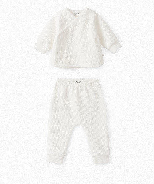 出産祝いに最適なベビーヘリンボーンクロスオーバーセット。ストレッチパンツに長袖のクロスオーバートップを合わせています。ヘリンボーン生地のサイドにはボンポワンのチェリーラベルが付いて、可愛らしさが一段とアップ。-ストレッチコットン混-スナップ付きクロスオーバートップ-ウェストゴム-袖口と足首はリブ編みディテール【75cm / 12ヶ月】【80cm / 18ヶ月】 Bonpoint | ボンポワン1975年にフランス・パリにて創業以来、子供服のクチュールハウスとしての豊かな経験とパリのアトリエが持つ優れた技術のもと、上質な美しさと品質、ディテールへのこだわりを追求し続け、繊細でポエティックな世界観でフレンチ・エレガンスを表現しています。親子でお使いいただけるスキンケアからフレグランス、ホームグッズまでが揃います。