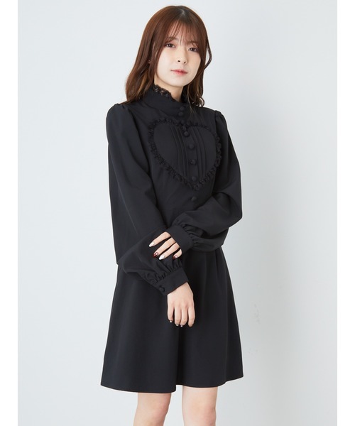 ハート&タックが入り、ゴシック&ガーリーなスタイルを楽しめるワンピースの登場です♪ フロントには、大きなハート形に、タックのあしらいがあり、可愛らしく、好アクセントに映えます。スタンドカラーには、レースがほどこされて、上品さをUP◎ ハイウエスト切り替えに、スリーブはたっぷりとして、甘辛テイストなスタイリングをアップデートします☆