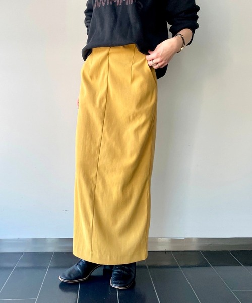 大人可愛い、コーディネートを華やかに彩る綺麗なイエローカラーのタイトスカート。 縦ラインが強調されスッキリとした印象に。 柔らかい素材で、スリットも入っておりますの動きやすいです。 ボリュームのあるトップスとの相性も抜群です。 様々なスタイリングに、差し色として使えるタイトスカートです。
