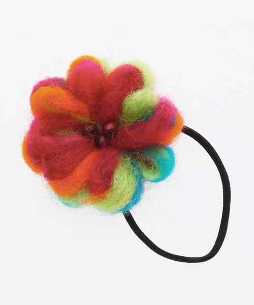 カラフルなお花が可愛らしいヘアゴム★柔らかなウールを色あざやかに染めてフワフワのお花をつくりました。色違いで集めたくなる、今シーズン一押しのヘアアクセサリー!ヘアアレンジが楽しくなります◎ ※こちらの商品は1点1点職人による手作り・ハンドメイドとなります。その為、形や色合いなど若干異なる場合がございます。(画像は一例です。)あらかじめご了承ください。 Amina Collection Co.,LTD.