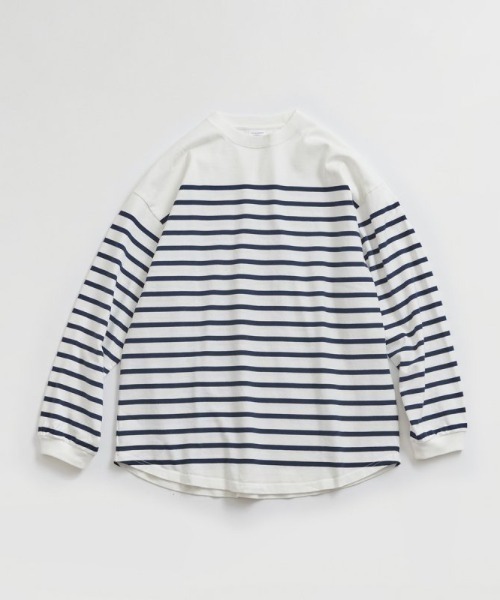 オリジナルでピッチやパネルを組んだ、春先に着たくなるボーダーロンT。定番のMARIN BORDERよりも厚手で、衿・袖口をフライス仕様にしているので、また違った雰囲気で着こなせるアイテムです。オーバーサイズのシルエットでフレアレギンスなどピッタリしたパンツ合わせにもおすすめです。
