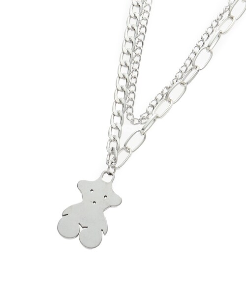 【デザイン】 デザインの異なるチェーンを用いた2連仕様のネックレス。 アシンメトリーなデザインがオシャレなアクセントに☆ クマモチーフのなんとも言えない、きょとんとした表情が愛らしいアイテムです。 店舗へのお問い合わせ商品番号:320-21645 ●製品寸法: 00:全長44cm モチーフH2.5cm モチーフW1.5cm 備考: