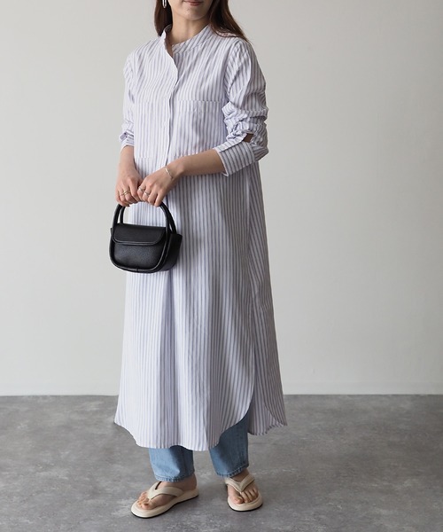 【Riberry タックストライプシャツワンピース】 ストライプが今の気分にぴったりなシャツワンピース ■Styling シンプルなシャツワンピースを ストライプ柄にして今っぽく。 下にはデニムパンツ、上には ニットやスウェット、カーディガンなどを合わせれば 冬から春まで長ーく着られるワンピです♪ ■Detail バンドカラーとロングカフス、タックのデザインで シンプルなのにさりげなくおしゃれ見え♡ 大人っぽいディティールで高見えするので カジュアルになりすぎず上品に着こなせます。 ■Material 薄手のブロード生地はレイヤードにもぴったり。 オールシーズン使えて着回し力抜群! 白地は透けるので、 ボトムにパンツを合わせてあげると安心です♪ ※詳しいお手入れ方法は商品タグをご参照ください。 【Information】 ◆《お気に入り登録》がオススメ◆ ・「商品のお気に入り登録」で再入荷通知や、ラストの通知、セール通知も受け取ることが出来ます。 ・「ブランドのお気に入り登録」で新商品や再入荷など、お得な情報を受け取ることが出来ます ※撮影時のライティング、ご覧になっているモニター・PC環境により、実際の商品と色味が異なって見える場合がございます。予めご了承をお願い致します。