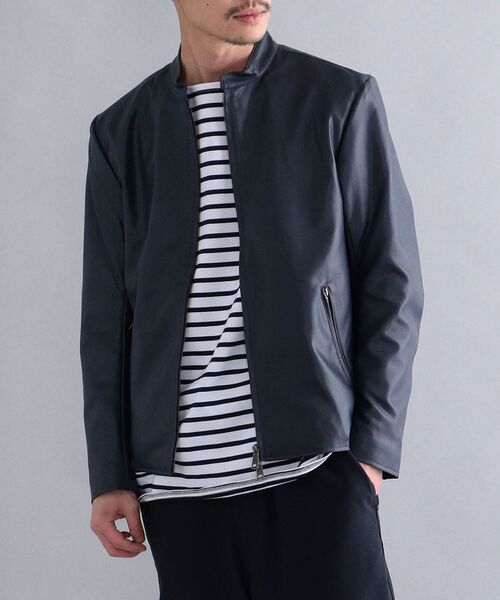リアルレザーと見違えるほど完成度の高いSynthetic Leather(フェイクレザー)を使用したシングルライダースジャケット リアルレザーに近い質感、また人工皮革ならではの軽量性が特徴のシングルライダースジャケット。 また、天然皮革よりもケアがしやすく、ちょっとした雨等でも気にせずご着用いただけます。 すっきりとした襟周りのデザイン、ステッチをボディカラーと同色にする等、過度な装飾を削ぎ落とし、上品且つ落ち着いた印象に仕上げたシングル仕様のライダースジャケットは、様々なシーンで使いやすく、抜群の着用感の良さも兼ね備えた一着となっております。 -------------------------------------------- 生地の厚み:中間 伸縮性:無 透け感:無 水洗い:不可 -------------------------------------------- 【スタッフ着用コメント】 《スタッフ1》 身長:170cm/体重:53kg/体型:やせ型/普段サイズ:M/着用サイズ:M タイトフィットですが、腕周り等計算されたシルエットで、動きやすく着心地良いです。 -------------------------------------------- ※画像の商品はサンプルです。実際の商品では色味、また一部仕様が変更になる場合もございますので、予めご了承ください。