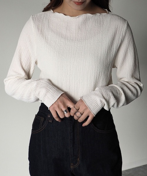 【Riberry ボートネックメロートップス】 1枚でもインナーにも♪ 凹凸のある素材感で高見えなカットソー ■Styling 高見えするふくれジャガードの生地で 1枚でもきちんと見えるボートネックカットソー。 ジャンパースカートやサロペットのインナー、 カーディガンとのレイヤードにもおすすめです♪ ■Detail 衿や袖、裾はメロー始末になっており 楽ちんながらきれいめ感も出せるインナー。 きれいな色展開でトレンド感も出しやすい1枚です。 ■Material 伸縮性抜群のカットソー素材。 ※詳しいお手入れ方法は商品タグをご参照ください。 【Information】 ◆《お気に入り登録》がオススメ◆ ・「商品のお気に入り登録」で再入荷通知や、ラストの通知、セール通知も受け取ることが出来ます。 ・「ブランドのお気に入り登録」で新商品や再入荷など、お得な情報を受け取ることが出来ます ※撮影時のライティング、ご覧になっているモニター・PC環境により、実際の商品と色味が異なって見える場合がございます。予めご了承をお願い致します。
