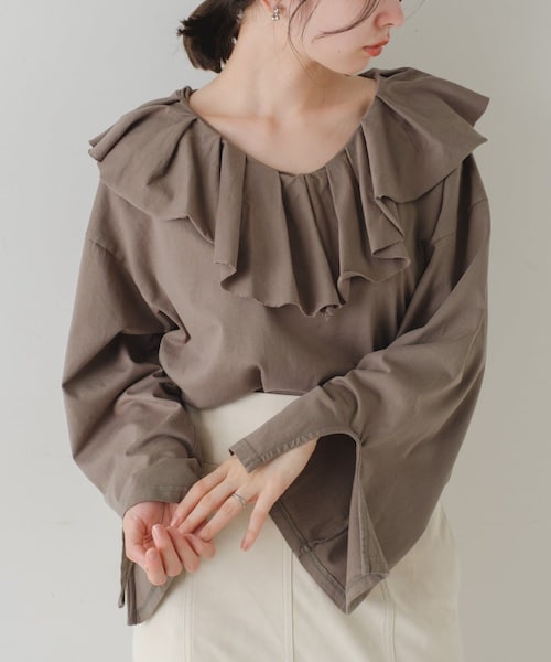 人気のボリューム衿プルオーバーが再登場■デザインブラウスではなく、ロンTのようなカットソー素材と衿の裾が裁ち切りデザインなので、甘すぎずカジュアルに着れるKastaneらしいポイント。袖も大きくリラックス感があり、スウェットやニットを重ねるのもオススメ。ベストのインナーにも最適でもちろん単体で春に着まわしたい1枚です。■コーディネート大き目の衿が可愛らしい印象のブラウスで衿と袖にボリュームがあるので、すっきりとしたシルエットのボトムとの相性が◎あえてカジュアルなデニムやスラックス、サロペットなどに合わせるとコーディネートがまとまります。■素材・洗濯素材:コットン100%洗濯:手洗い可タンブル乾燥:不可アイロン:150℃まで※サイズ採寸は各モールによって異なり、多少の誤差が生じる可能性がありますのでご了承ください。※商品画像はサンプル品を使用しているため、実際の商品と仕様、加工、サイズが若干異なる場合がございます。また、可能な限り実物に近いカラーにて掲載していますが、使用しているパソコンのモニター設定や、携帯電話のメーカー・機種により実際のカラーと異なって見える場合がございます。予めご了承ください。▼商品のお気に入り登録完売カラーの再入荷通知を受け取ることができます。▼PALCLOSETアプリにてブランドフォロー新商品や再入荷等、いち早くブランドのお得な情報を受け取ることができます。<返品・キャンセルについて>・着用・洗濯後の返品は致しかねます。・商品到着後、着用前に商品を確認して頂きますようお願い致します。211220revival