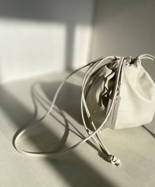 上質なレザーを使用したミニマルなギャザーショルダーバッグ●デザイントレンドライクな巾着型は、ラフに持つだけで雰囲気のあるスタイリングに。肩掛けも楽しめる長めのショルダーストラップが付いたうれしい2way仕様。飽きのこないシンプルなデザインで、きれいめからカジュアルまでスタイルを選ばずマルチに使えるアイテムです。どんなスタイルにも合わせやすいホワイトカラーはデイリー使いとして重宝間違いなしです。●サイズ口幅:30cm底幅:15cm高さ:16.5cmマチ:13.5cm持ち手長さ:約112cm●素材羊革※画像の商品はサンプルとなります。実際の商品と仕様、サイズ等が若干異なる場合がございます。 詳細画像は別カラーを使用しています。【MARCO MASI/マルコマージ】1989年に設立され、数々の有名デザイナーブランドのレザーアイテムを手掛けるイタリア・ミラノ発のレザーファクトリーブランド。厳選したレザーを使用した高品質なバッグが人気。ハイセンスなデザインで世界中から高評価を得ている。--------------------------------------------------------------------------------【注意点】※画像の商品は光の照射や角度、お使いのモニター環境により、 実物と色味が異なる場合がございます。あらかじめご了承下さいませ。--------------------------------------------------------------------------------【『♡』をクリックでお気に入り登録】・ラスト1点や再入荷の通知が届きます。--------------------------------------------------------------------------------#今買いアイテム